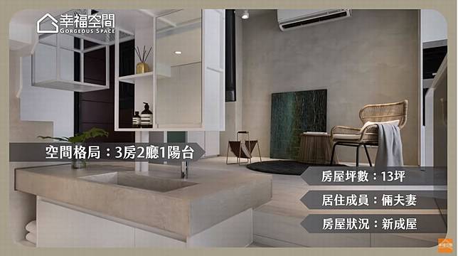 愛情長跑五年的新婚夫妻,熱愛旅行與穿搭,對於居家空間,也別有自我的想法,透過質覺制作設計團隊設計擘劃,以重疊機能為設計主軸,為13坪的樓中樓小宅創造出3房2廳的空間,並激放坪效做了多元收納機能,輕淺的色調賦予穿透鐵件展示櫃輕盈視感,延展空間尺度與明亮感。快跟著《幸福空間》特派員腳步,看看設計師用了哪些收納巧思,為這對新婚夫妻構築完美的新婚小豪宅吧!